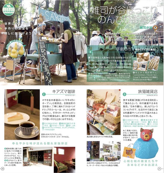 ■ボンジュールメトロに掲載されました 2009-10-11 2009年10月11日 東京メトロ季刊情報誌「ボンジュール!メトロ」 秋号 <雑司が谷ほっこり のんびり街散歩> に当店が紹介されています。東京メトロの主要駅にて無料で配布されていますので、ぜひお手に取ってみてください。細長いハンディサイズの小冊子ですが、東京メトロで行けるいろいろな散歩コースがコンパクトにまとめられていて充実した内容になっています。 Tweet «前 次» 店舗からのお便り