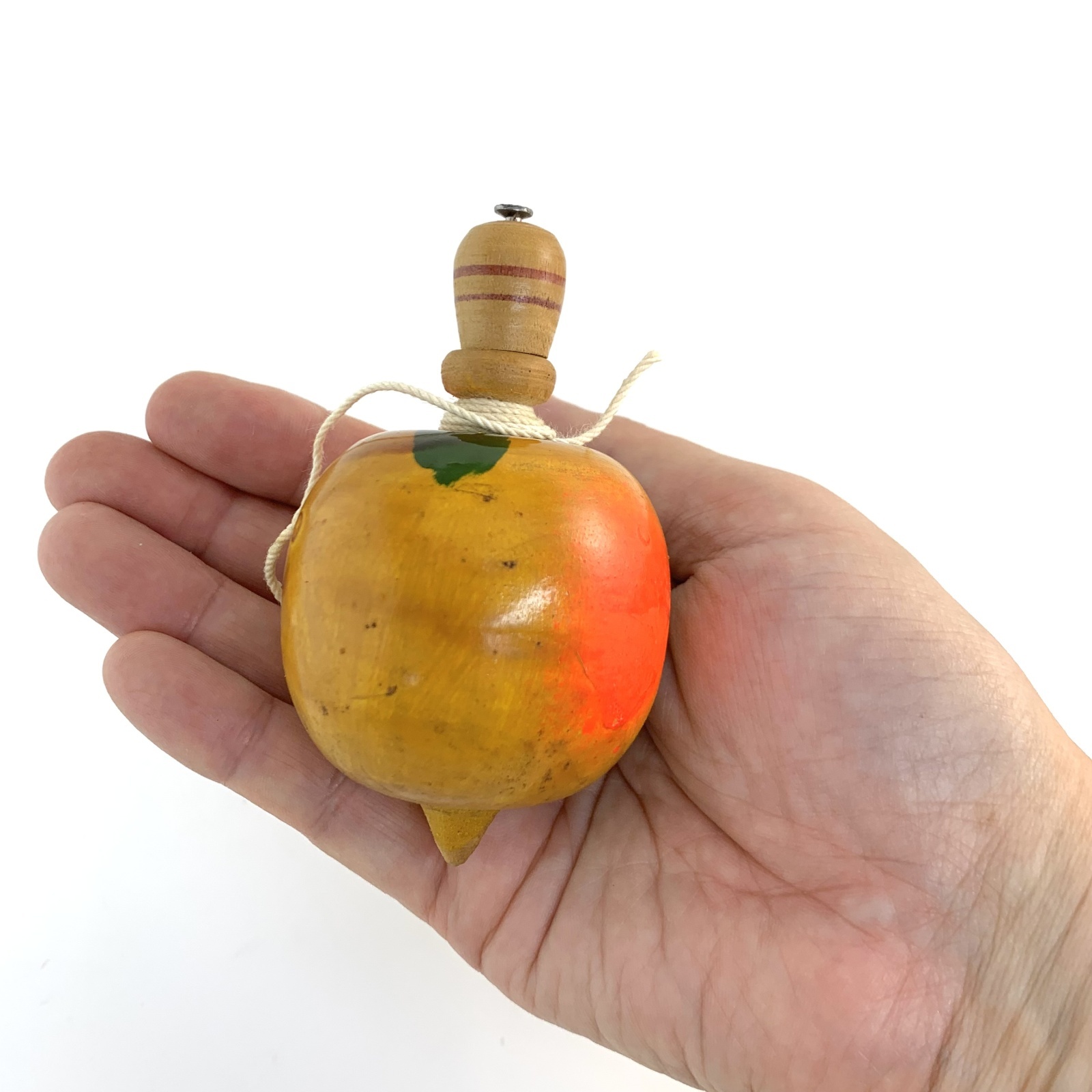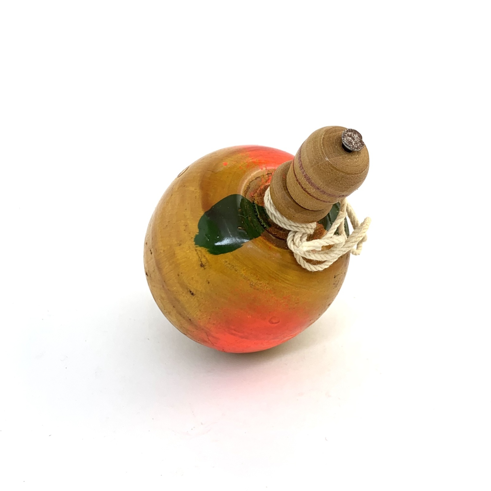 [木地玩具] はりまや/糸引きごま・桃(糸付き)