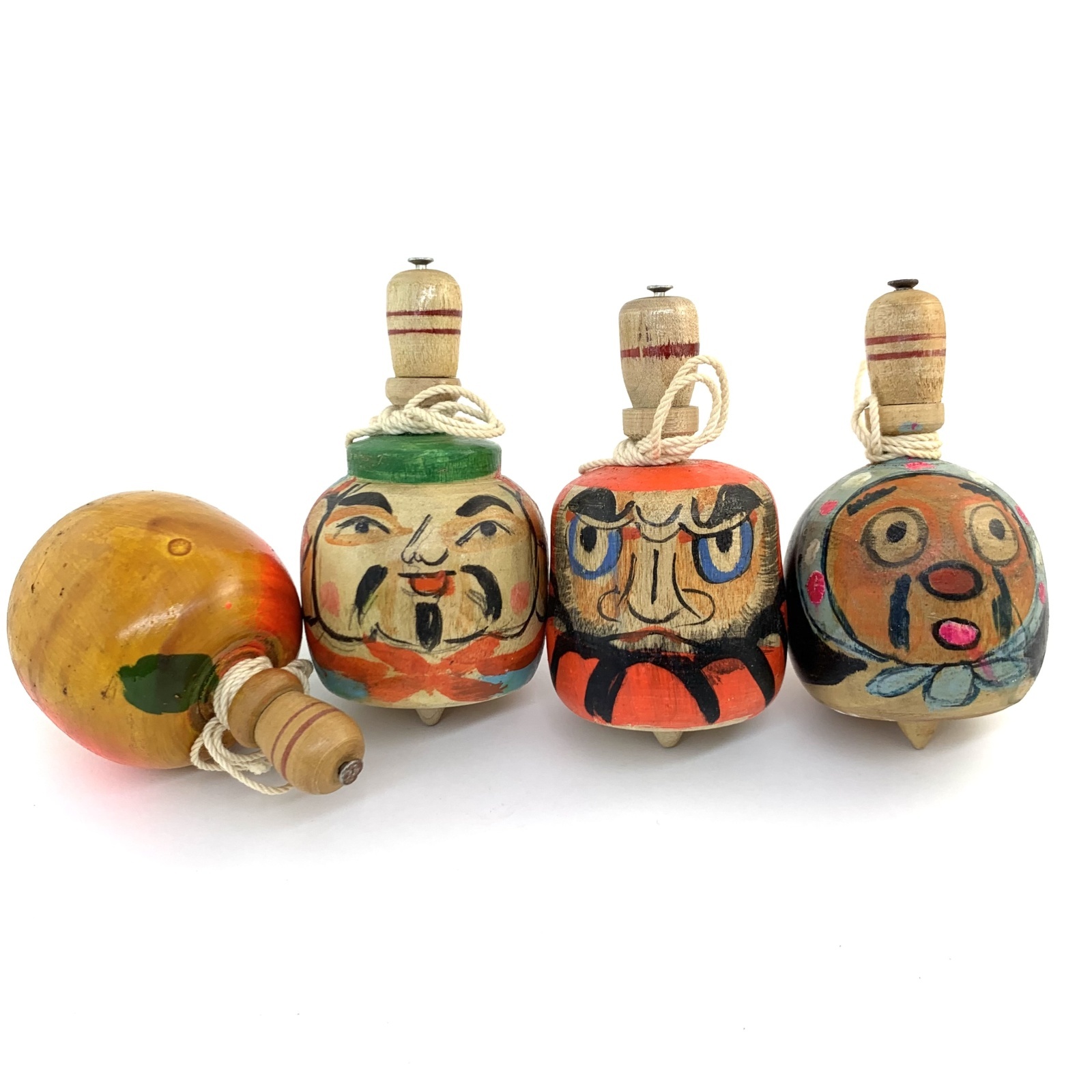 [木地玩具] はりまや/糸引きごま・だるま(糸付き)