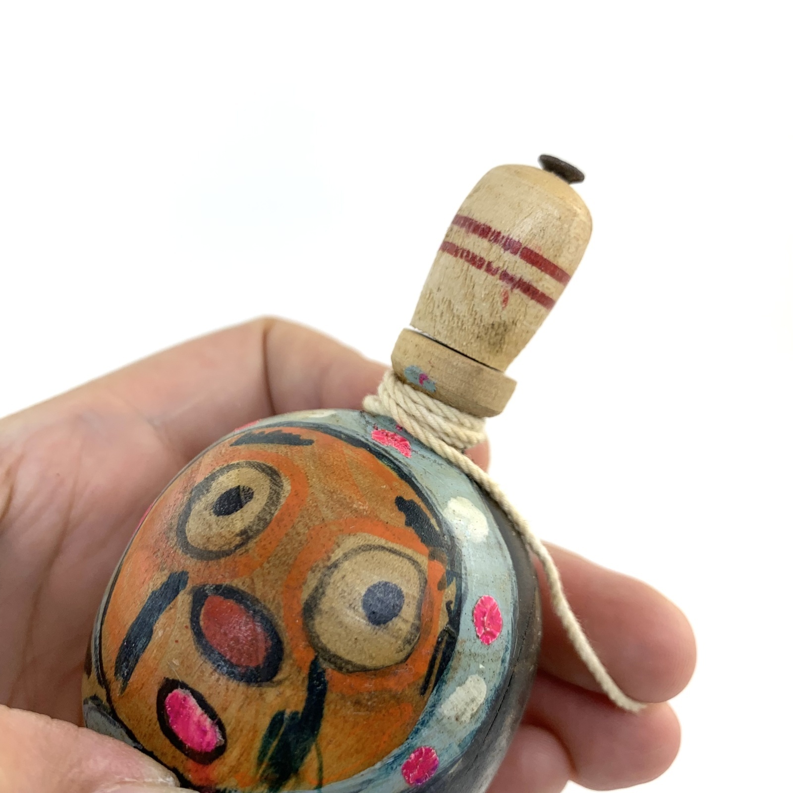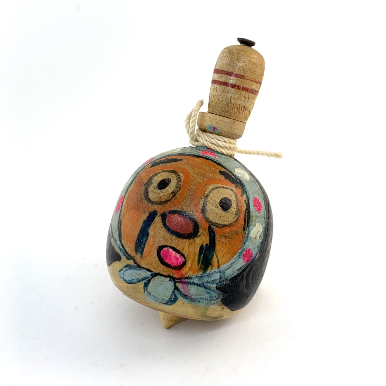 [木地玩具] はりまや/糸引きごま・おかめひょっとこ(糸付き)