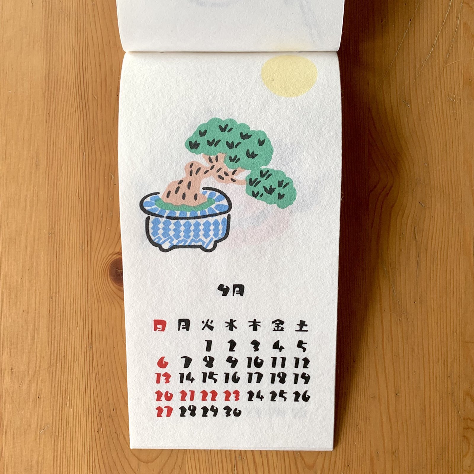 ■四季折々の図案を、型染めの技法で1枚1枚手作業で仕上げている12ヶ月カレンダーです。
