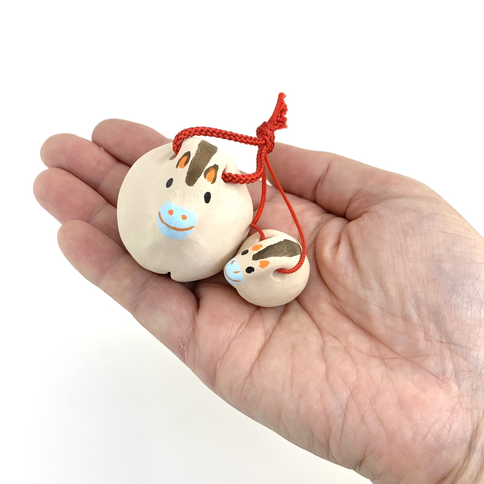 ■素焼きの土の肌を活かし、必要最低限の絵付けでかわいらしい馬の親子を表現した土鈴です。