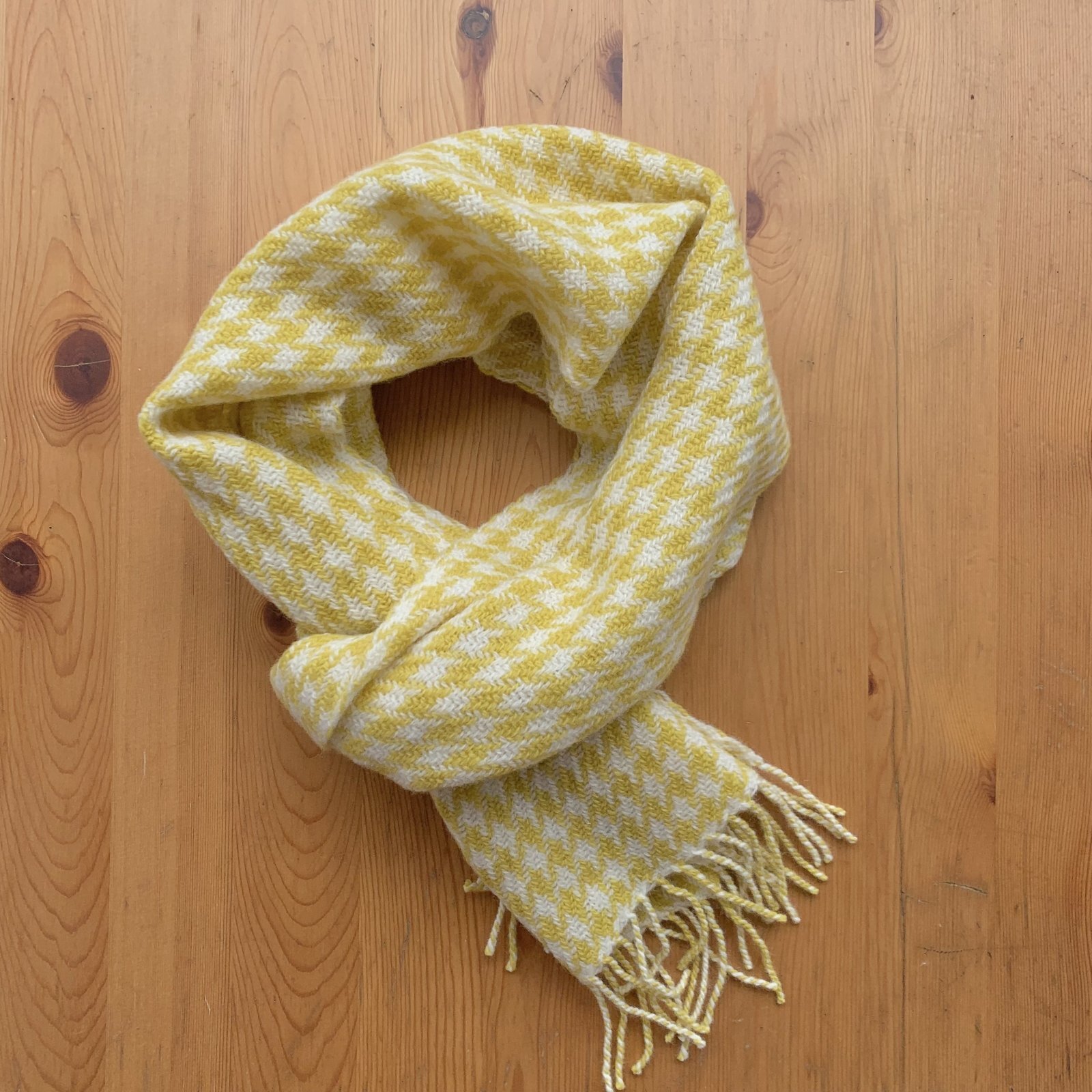 ■レモンイエローと白がさわやかな印象のマフラーです。