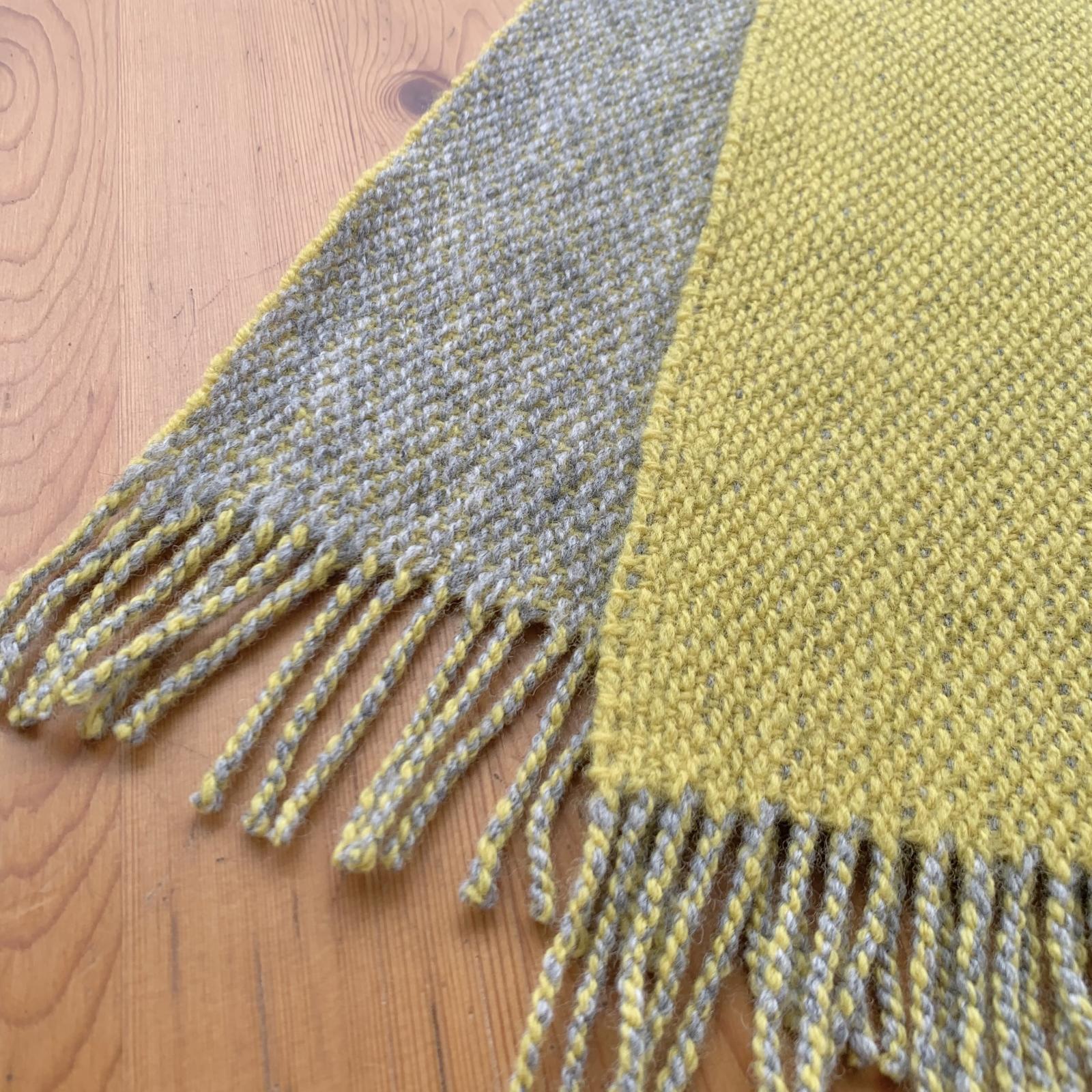 手織りマフラー/両面織り(レモンイエロー/グレー)