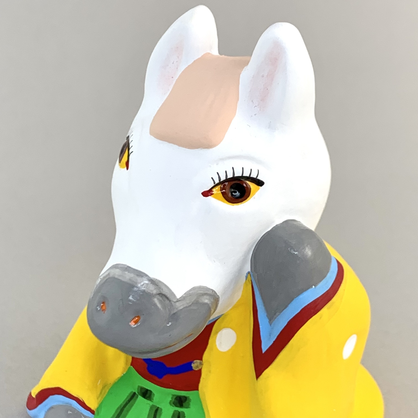 ■二頭身で漫画みたいな頭の大きさ、お目々パッチリのユニークな午の土人形です。